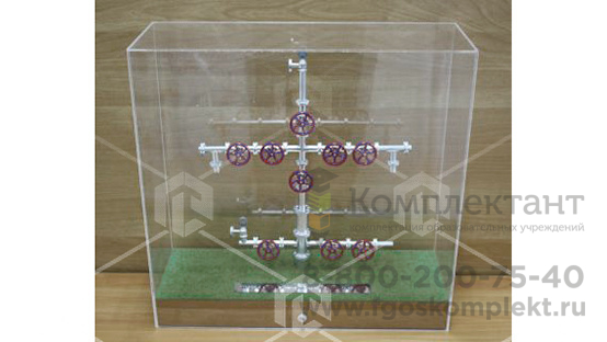 На макете показано устройство крестовой фонтанной арматуры, расположение задвижек, дросселей.