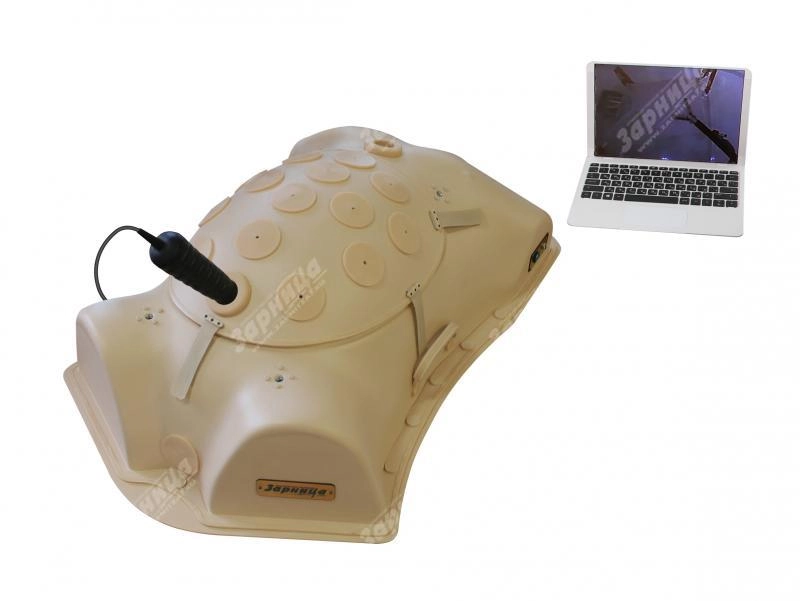 Конструкция представляет собой модель туловища человека с верхними фрагментами бедер, и обеспечивает быстрый и легкий доступ при замене компонентов, применяемых на занятиях по проведению лапароскопических операций. На корпусе, повторяющем конфигурацию передней брюшной стенки в состоянии инсуфляции, равномерно распределены порты для эндохирургических инструментов. Поддон модели туловища оснащен металлической пластиной, позволяющей проводить электрокоагуляционные манипуляции на биологическом материале. Корпус тренажера обеспечивает возможность проведения тренировки в двух режимах: