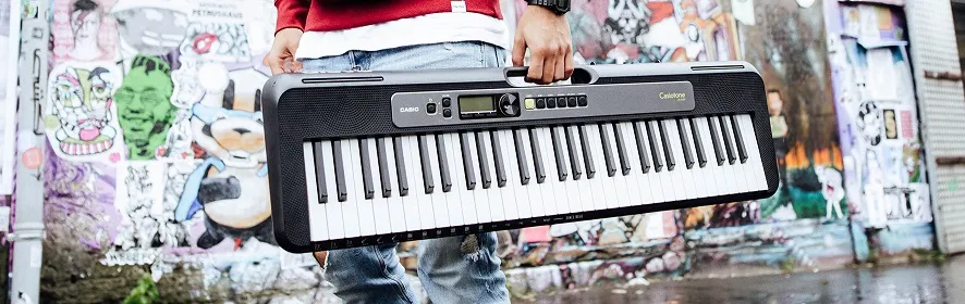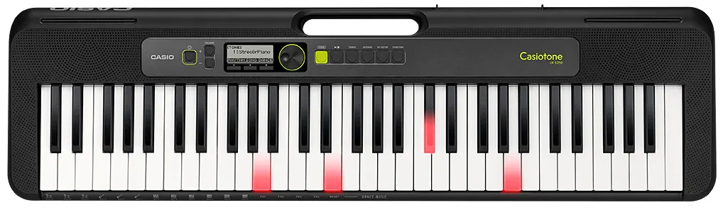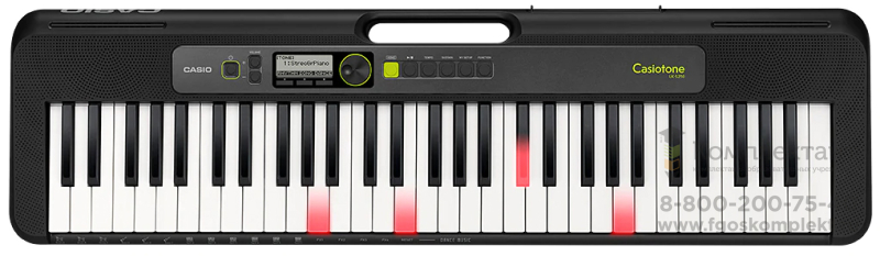 CASIO LK-S250 – компактный синтезатор из линейки CASIOTONE от знаменитого японского производителя, оснащенный 61-клавишной клавиатурой фортепианного типа с двумя уровнями чувствительности. Он может работать как от сети, так и автономно от батарей (6 батареек АА). Вес синтезатора – всего 3,4 кг. Сверху есть ручка для переноски в руке, эргономичный обтекаемый дизайн корпуса делает синтезатор идеальным для транспортировки.