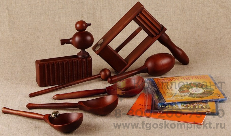 В комплект входит самоучитель игры на шумовых народных инструментах (DVD-видео) и музыкальные пьесы для шумового ансамбля (CD-аудио).