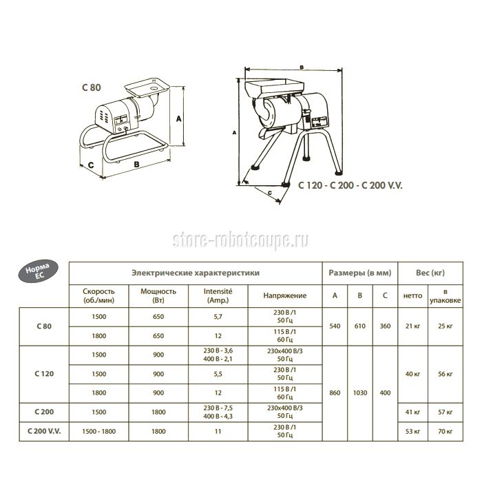 Протирочная машина Robot Coupe C120 доступна в двух версиях: 220В и 380В