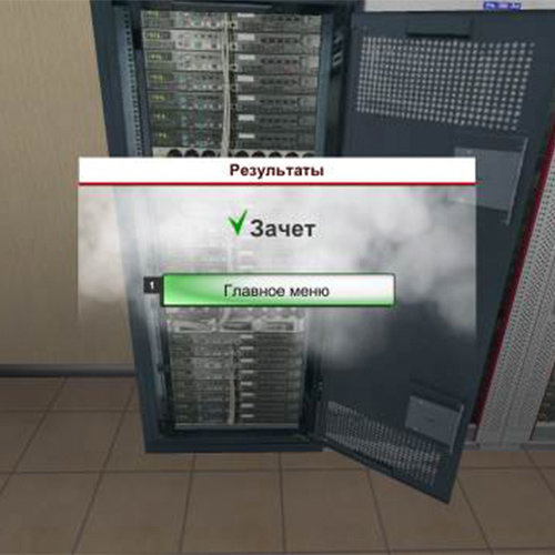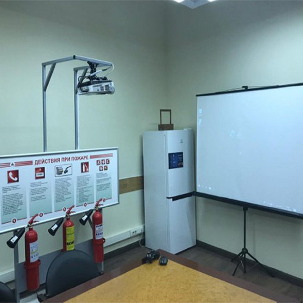 Программное обеспечение интерактивного тренажерного комплекса содержит пять сценариев пожара в зависимости от вида горючего материала, обеспечивает трехмерное изображение помещения и расположенных в нем объектов, очага пожара, задымления, огнетушащей струи, изменения площади пожара и задымления в зависимости от действий обучаемого при тушении очага возгорания.