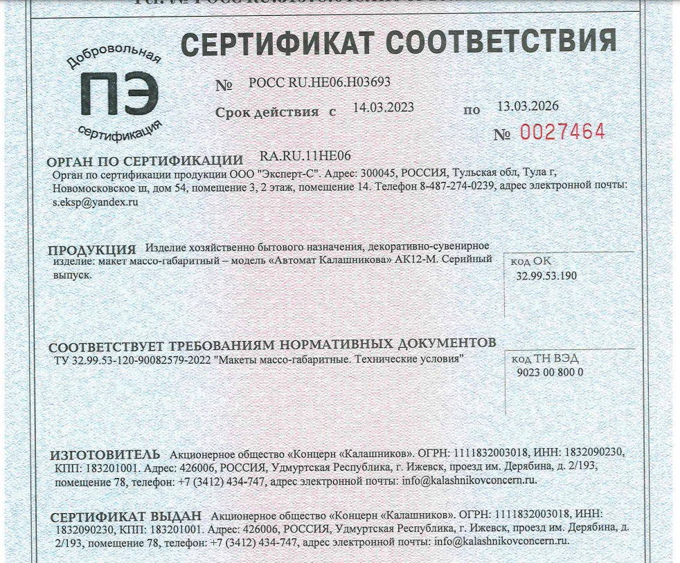 ММГ Макет АК-12 (Калашников учебный), АК12-СУ
