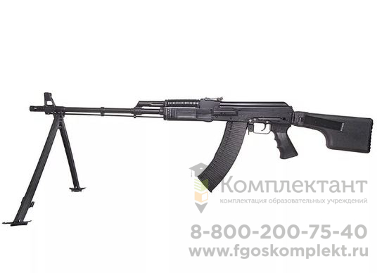 Макет массогабаритный ручного пулемета РПК74М предназначен для использования в качестве сувенира, сценического имущества, выставочного образца - имитатора, технологического образца - имитатора, учебного пособия.