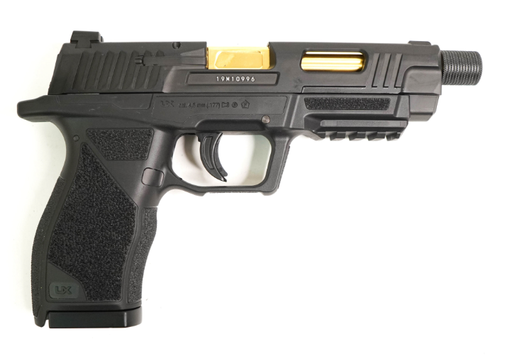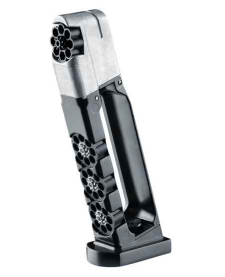 В качестве снарядов могут использоваться шарики ВВ 4,5 мм или свинцовые пули. Ствол изделия нарезной. Скорость вылета снарядов - 120 м/с (для шариков ВВ) и 130 м/с (для стальных боеприпасов). Один баллон с газом дает возможность произвести около 50 выстрелов. Магазин пистолета полноразмерный, с клип-барабаном из пластика емкостью 8 снарядов.
