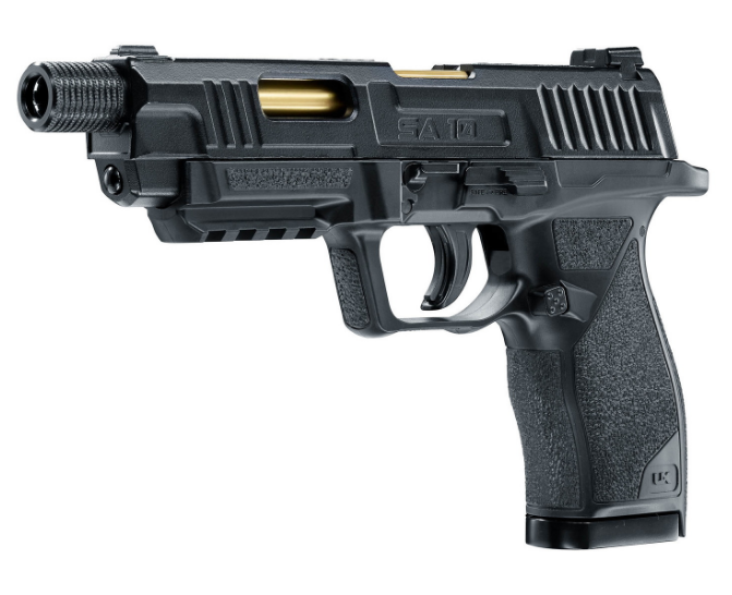 Пневматический пистолет Umarex SA10 - это модель оригинальной конструкции, выполненная в стиле кастомных матчевых пистолетов, разработка немецкого производителя. Пистолет является газобаллонной пневматикой, работающей от энергии сжатого газа и использует баллоны с углекислотой весом 12 г. Затвор при стрельбе имитуриует отдачу (система BlowBack)