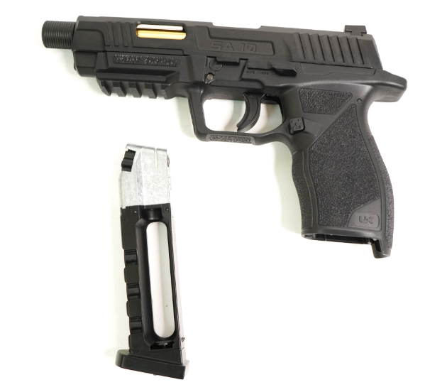 Затвор пистолета имеет скелетообразную форму для снижения веса изделия. Корпус и затвор Umarex SA10 выполнены из металла, ствол из стали, корпус - из прочного пластика ABS