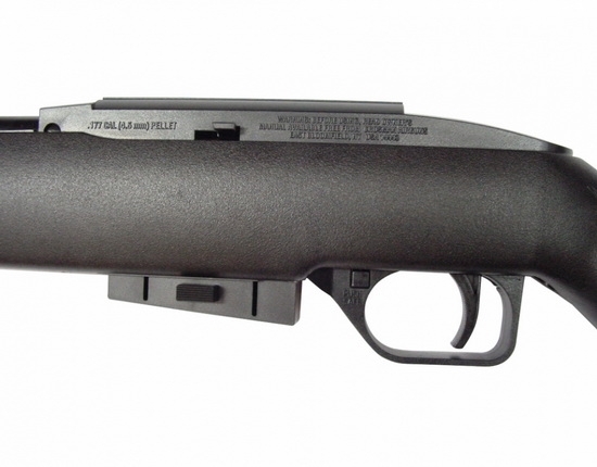 Имеет нарезной ствол и оптико-волоконную мушку.