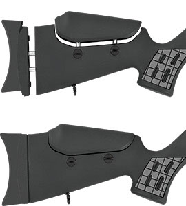 Пневматическая винтовка Hatsan BT65 SB Elite получила эргономичную пистолетную рукоятку с насечками, два слота для хранения запасных магазинов и три планки вивера - одна снизу и две по бокам цевья для крепления аксессуаров.