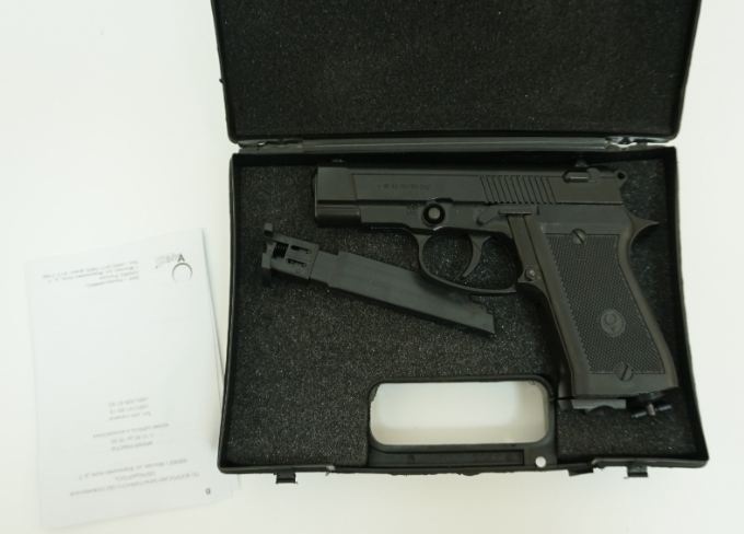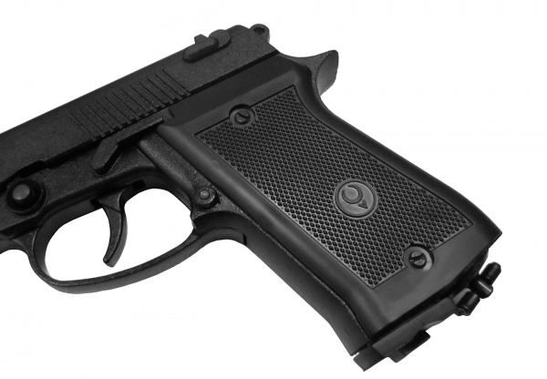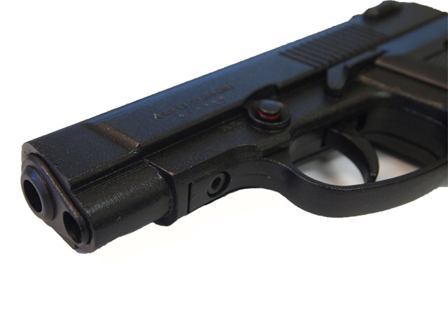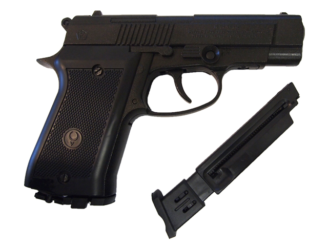 Позволяет вести стрельбу стальными омеднеными шариками калибра 4,5 мм. 15-зарядный пластмассовый магазин и 12-граммовый баллончик с углекислотой размещаются в рукоятке.