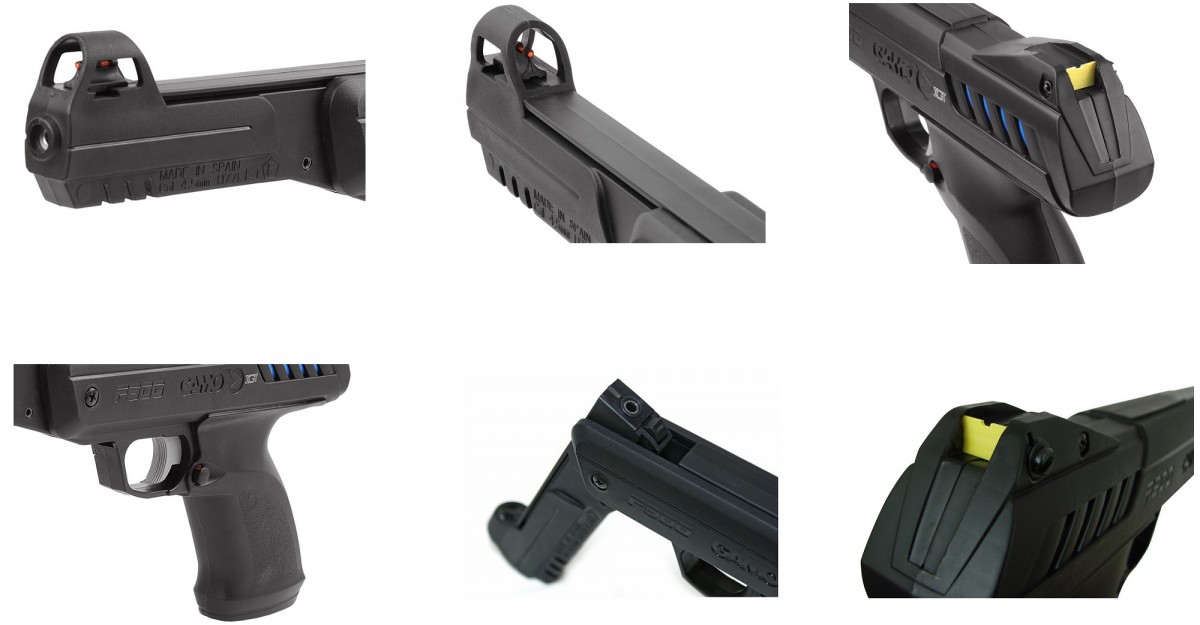 В данной модели пистолета Gamo достаточно широко применяется оружейный пластик - он не только полностью покрывает ствол, УСМ, а также цилиндр модели, но и даже используется при изготовлении действующего механизма пистолета (из пластика изготовлены цилиндр и поршень P-900). Но это не сказывается на прочности пистолета, при этом замена некоторых деталей на пластиковые заметно снижает общий вес оружия (масса пистолета составляет всего пятьсот шестьдесят граммов).