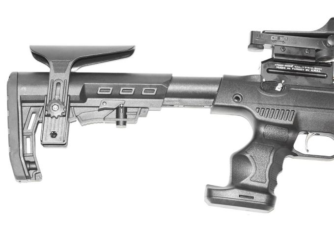 Приклад имеет регулировку по длине и высоте подщечника. Выполнен он из высокопрочного полимера.