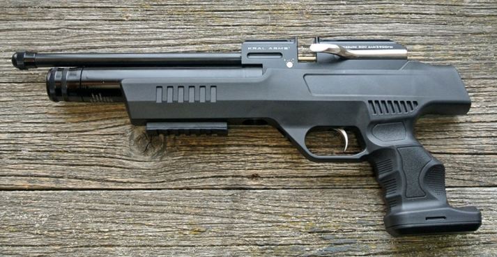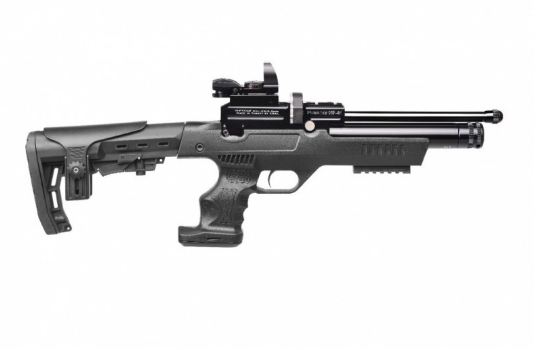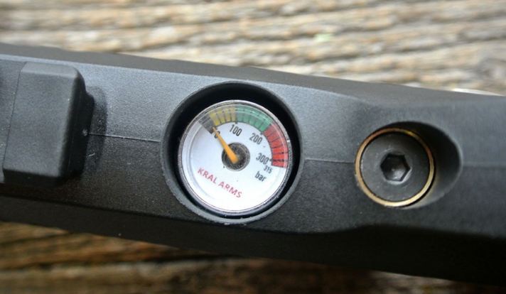 Резервуар для воздуха располагается непосредственно под стволом. Его объём составляет 105 куб.см, а выдерживает он давление до 200 бар. Этого достаточно для комфортного отстрела 35-40 пуль. Начальная максимальная скорость пули достигает 228 м/с.