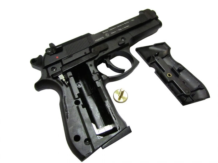 Газобаллонный пневматический пистолет Umarex Beretta M92 FS (на базе американского армейского пистолета Беретта M92). Оригинальная конструкция рычажного, прижимного механизма позволяет быстро и надёжно снарядить баллон СО2.