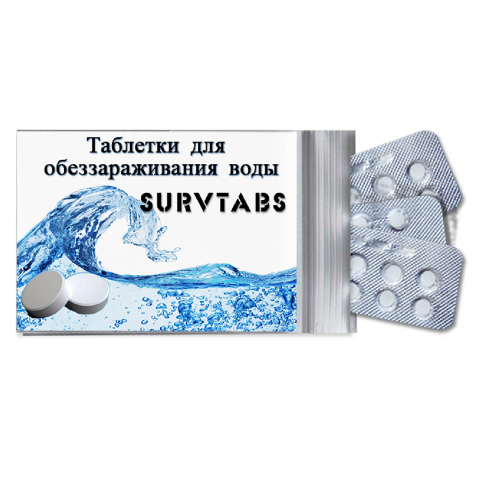 Surv WaterTabs – это таблетки для обеззараживания воды. Они помогут дезинфицировать природную воду (например, из реки, озера или лужи) до состояния, безопасного для питья и приготовления пищи.
