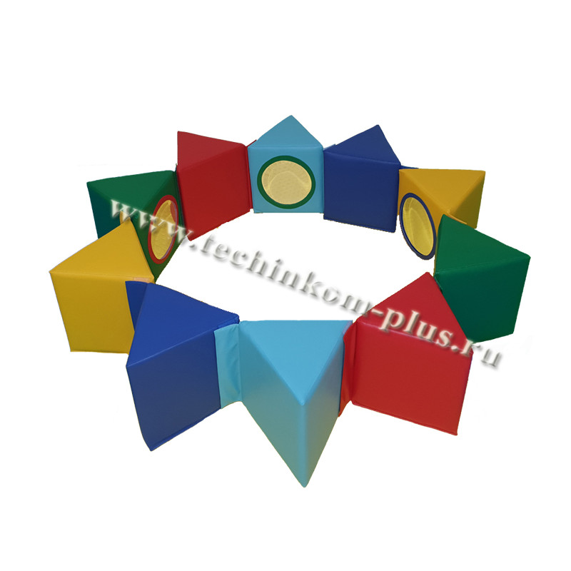 Состоит из 10 одинаковых разноцветныхтреугольников, которые крепятся между собой при помощи липучки, что позволяетсоздавать различные конструкции, строить различные фигуры, развивая пространственноеи образное мышление, воображение.